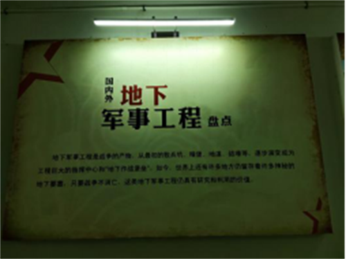 地下室有4,000平米的坑道,悠長陰暗,深不見底,是林彪的軍事秘密基地,坑道兩側用圖片記錄展示著部分國內外地下軍事工程。