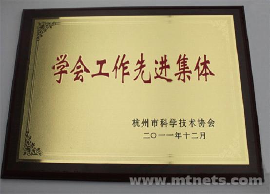 學(xué)會(huì)獲得杭州市科協(xié)學(xué)會(huì)工作先進(jìn)集體的榮譽(yù)