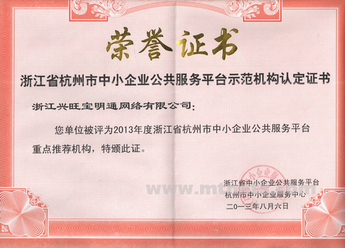 2013年度浙江省杭州市中小企業公共服務平臺重點推薦機構頒獎